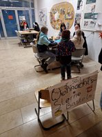 Grundschulklassen spielten mit Mittelschulklassen klassische Spiele aller Art: Karten, Brett-, Geschicklichkeits- und Bewegungsspiele und vieles mehr. Im ganzen Schulhaus waren eifrige Spielgruppen verteilt.