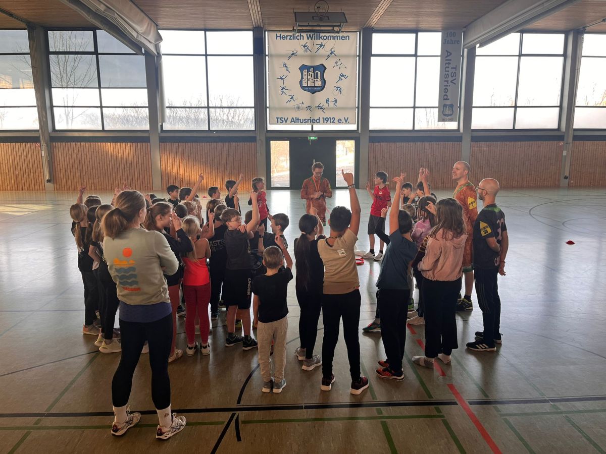 Die Klassen 4b und 6bM der Grund- und Mittelschule Altusried durften am 25. Juni 2024 erstmals beim großen Kinder-Konzert von „6K-united!“ in München teilnehmen. Die Stimmen von 6000 Kindern in der Olympiahalle München ergaben mit der Band von Fabian Sennholz eine überwältigende Atmosphäre für die 43 Schülerinnen und Schüler und ihre Begleiterinnen Frau Öttle, Frau Kammel, Frau Rasch und Frau Tesch.