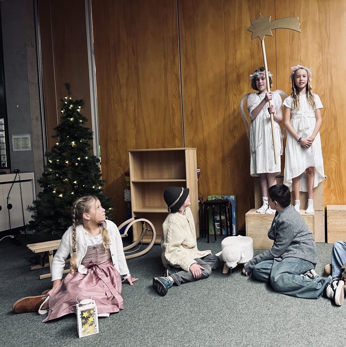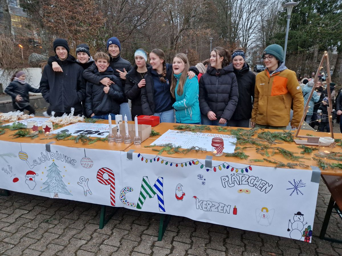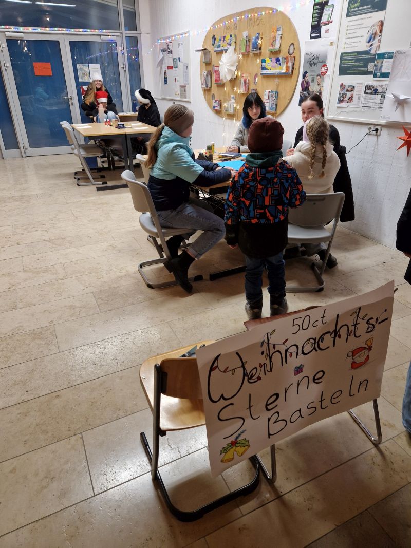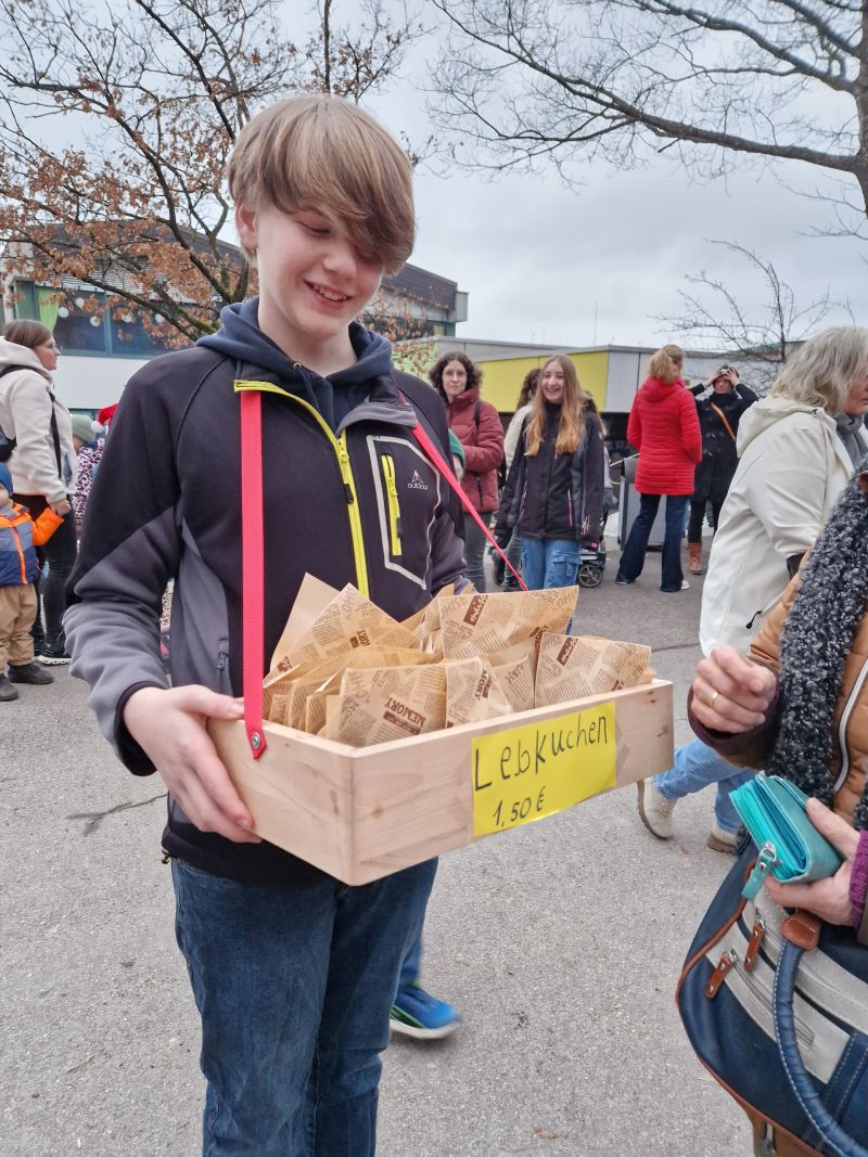 Mit einer stimmungsvollen Eröffnungsfeier begann am 21.12.2023 das große gemeinsame Weihnachts-Event an der Grund und Mittelschule. Frau Öttle sorgte mit der 6a und deren Instrumentalisten für eine gelungene Einstimmung auf vielfältige Angebote. Die Grundschüler luden die "Großen" zu ihren Bühnen-Vorführungen ein und wurden mit viel Applaus belohnt. In der Mittelschule gab es einen Markt mit Gebäck, Punsch, Crêpes und kleinen Weihnachtsgeschenken. Die Klassen besuchten sich gegenseitig zu Quiz, englischem Theater, Team-Memory und anderen Spielen.