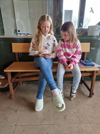 Alle Teilnehmer wurden in der Aula der Grundschule geehrt, bekamen eine persönliche Urkunde und ein Knobelspiel. Marietta Greither aus der Klasse 3b und Ilija Subotic aus der Klasse 4b gewannen mit ihren hervorragenden Ergebnissen sogar einen Sonderpreis.